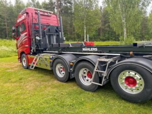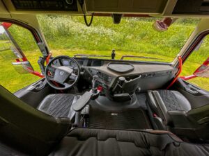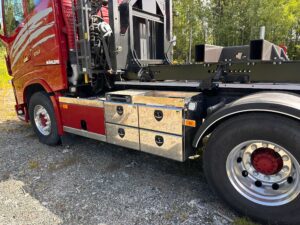 Luftfjädring på alla axlar och Volvo-fjärr för höj/sänk av luftbälgar utifrån bilen.