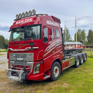 Volvo FH16 650 hk, 8×4 tag tridem (FH 84 TR) med HIAB XR24SL58-W-0C2BT lastväxlare (24 ton), VBG-drag, nytt frontplogfäste med ploghydraulik och förberedd för saltspridning.
