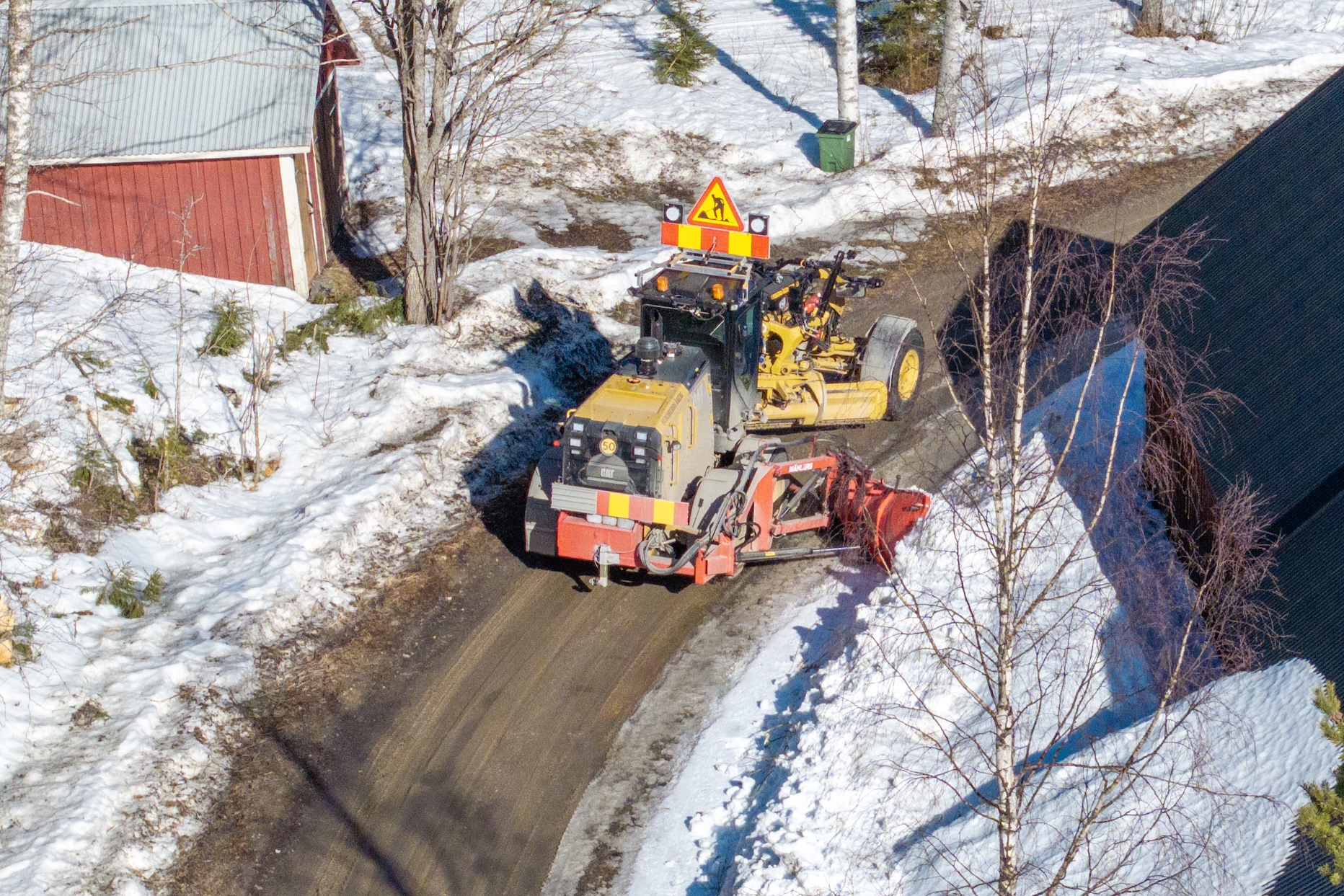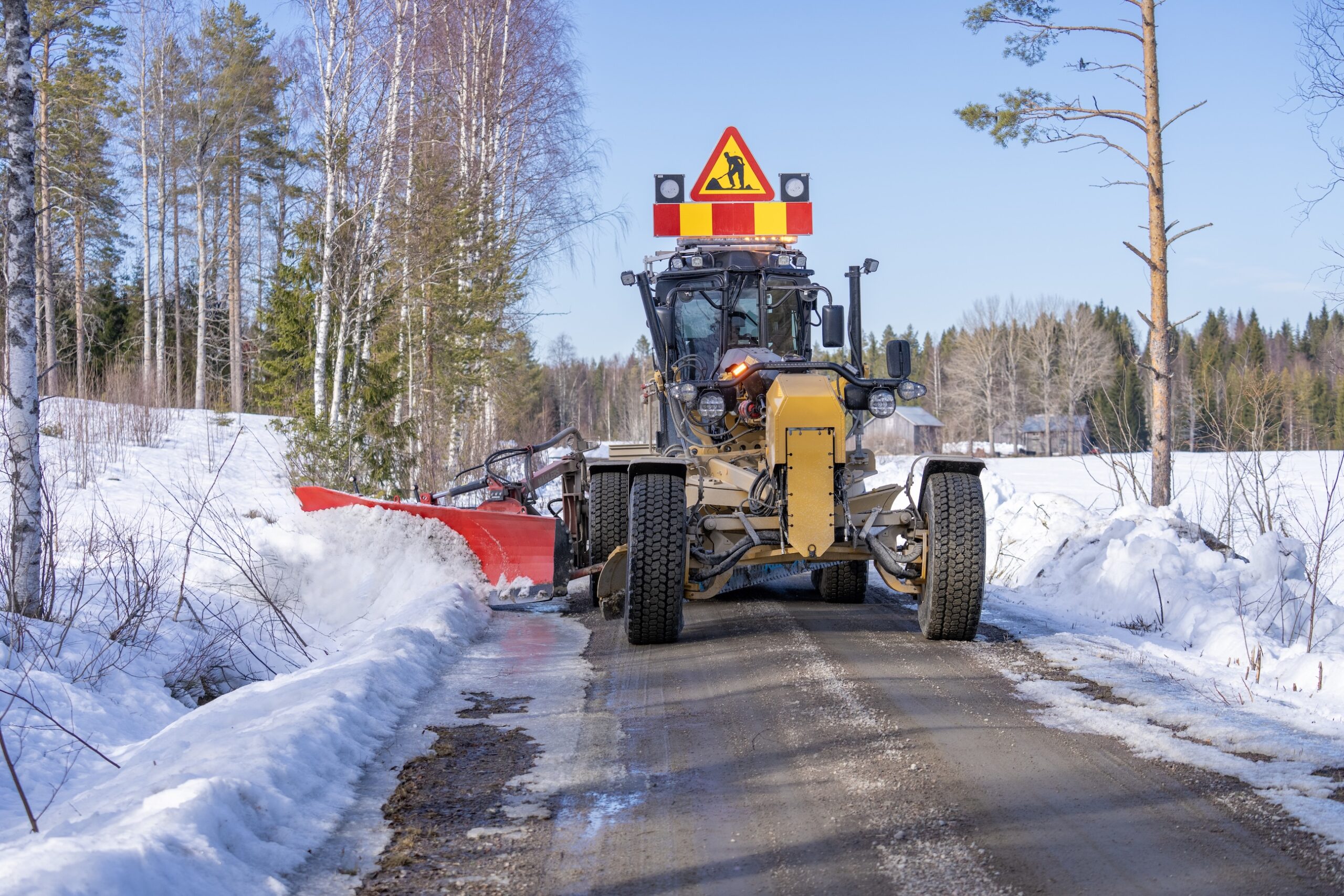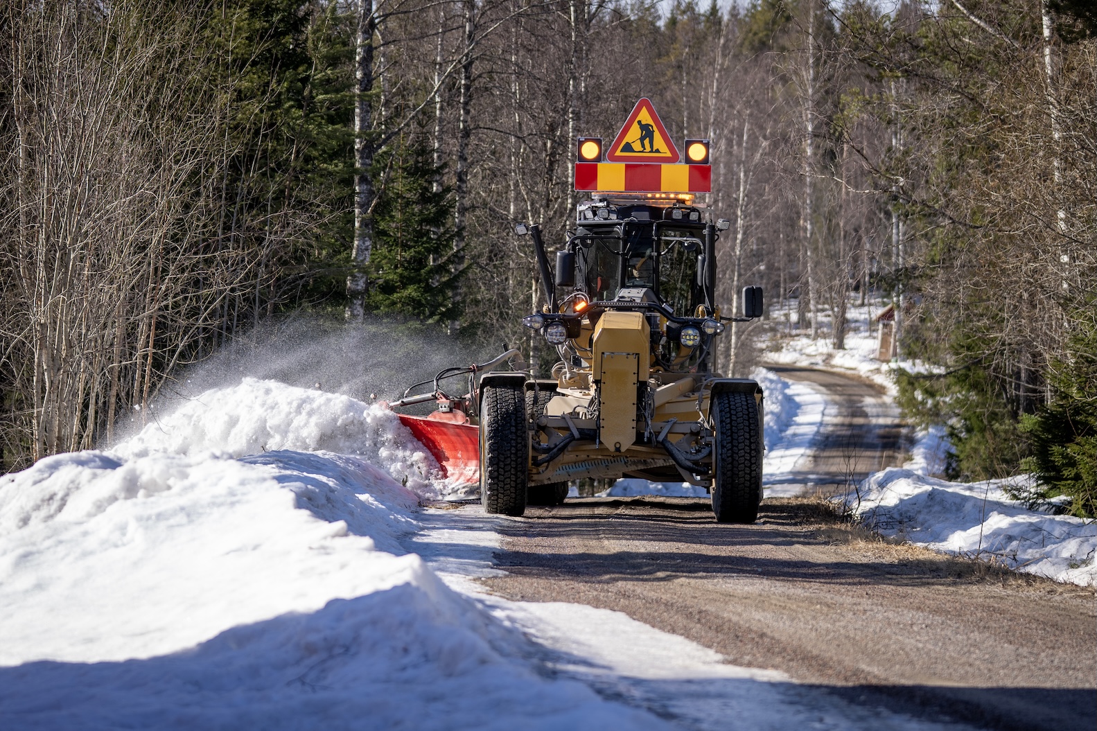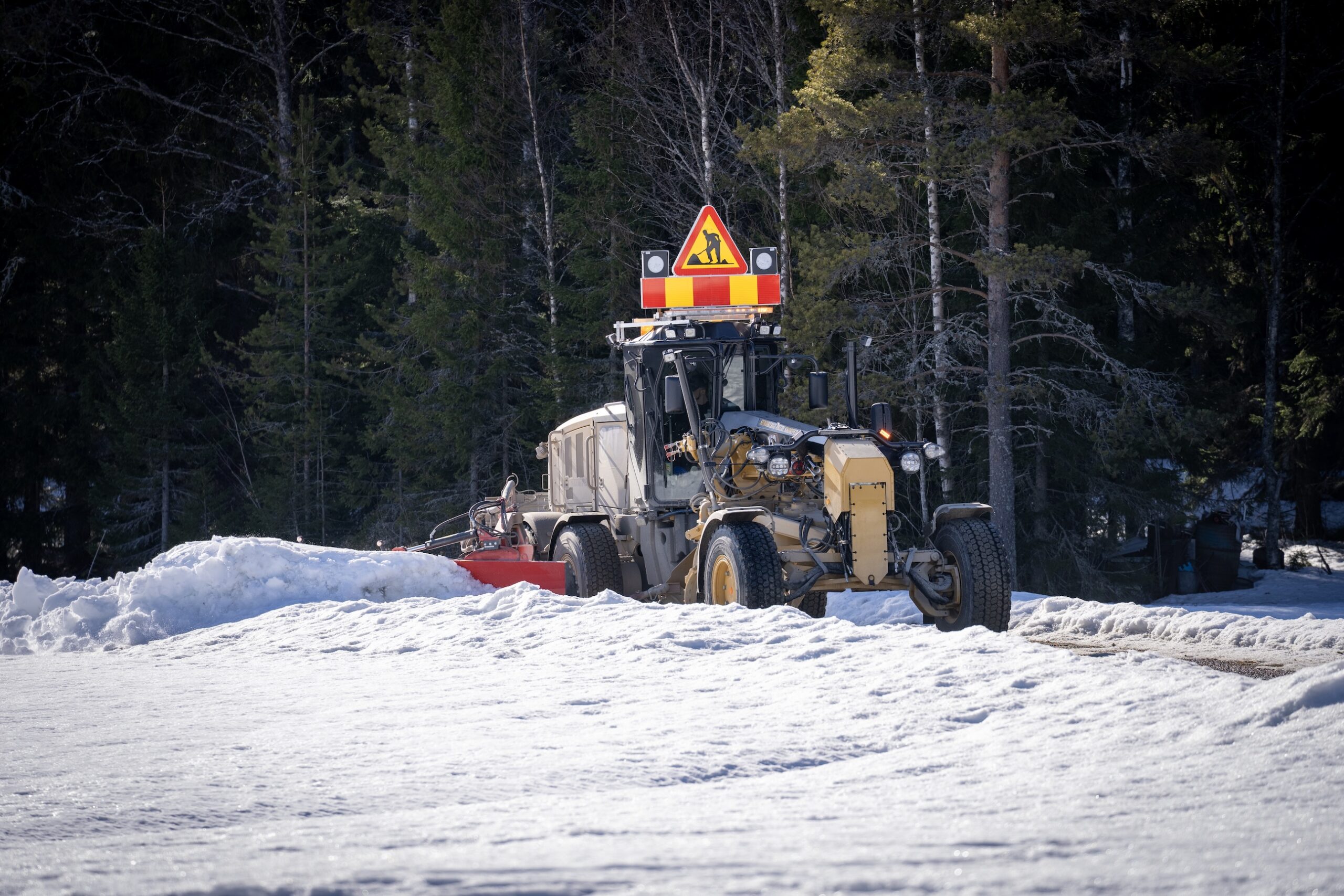 Vårsolen har börjat göra jobbet redan i mars. När solen ligger på och när temperaturen stiger på dagarna släpper tjälen snabbt och snart blir de frusna skogsbilvägarna blöta och mjuka. Att snödika – det vill säga skära ned snöplogkanterna och trycka ut dem i terrängen – är en beprövad metod för att påskynda upptorkningen. Resultatet: vägarna blir snabbare körbara, både för vanliga fordon och för tunga transporter.