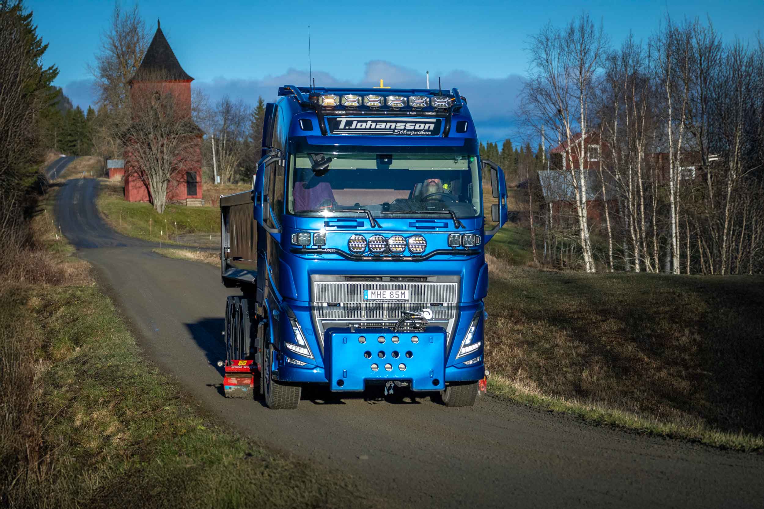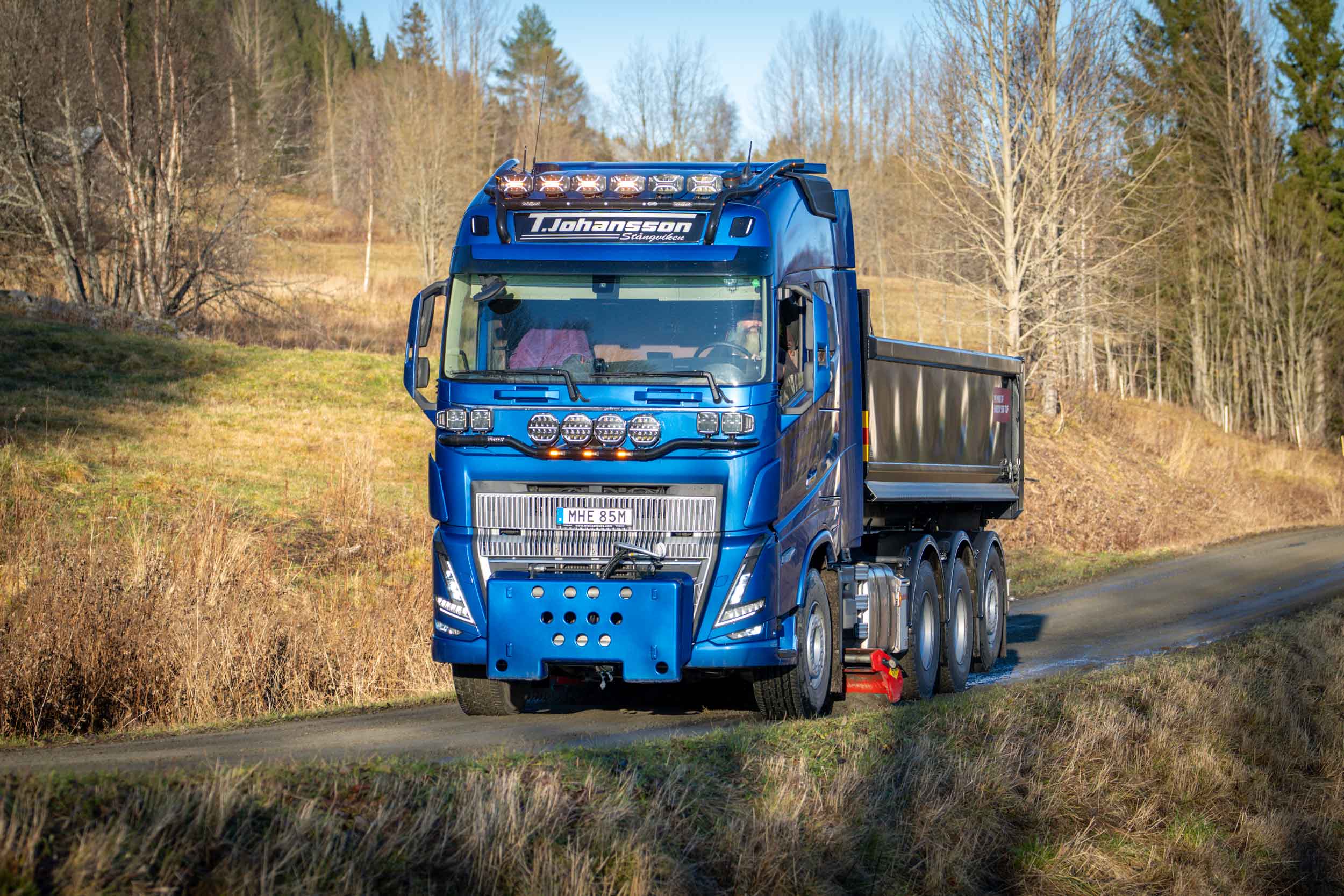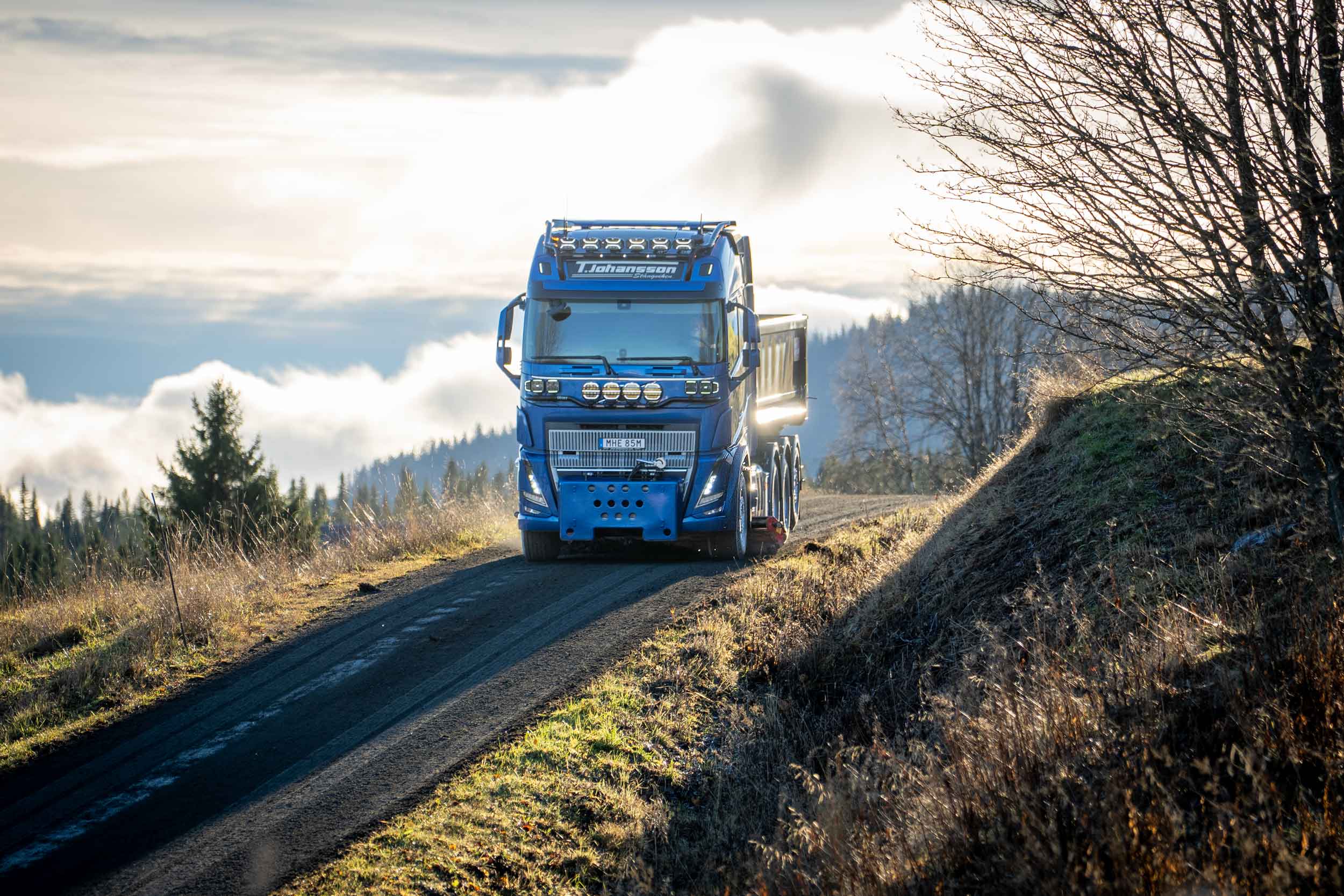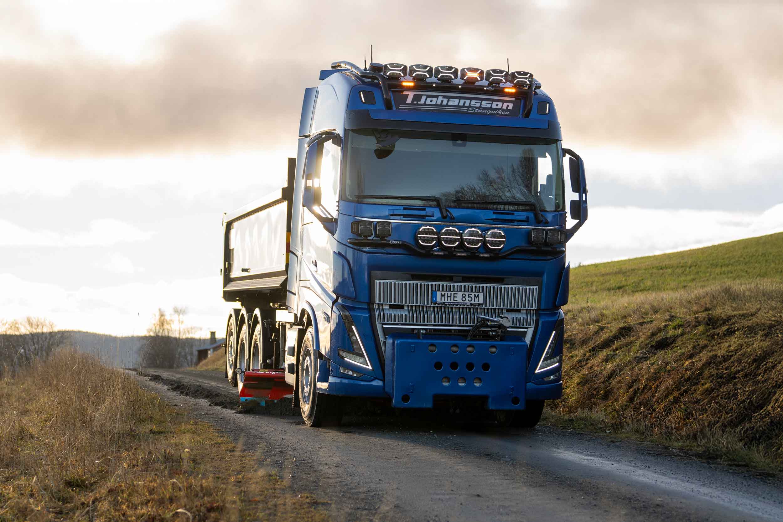När vägarna i Jämtlands inland mjuknar av regn och höstväta gäller det att ligga steget före. Tommy Johansson i Stångviken ser till att grusvägarna hålls jämna och farbara – med sin nya Volvo FH16 och Mählers underbett som trogna arbetskamrater.