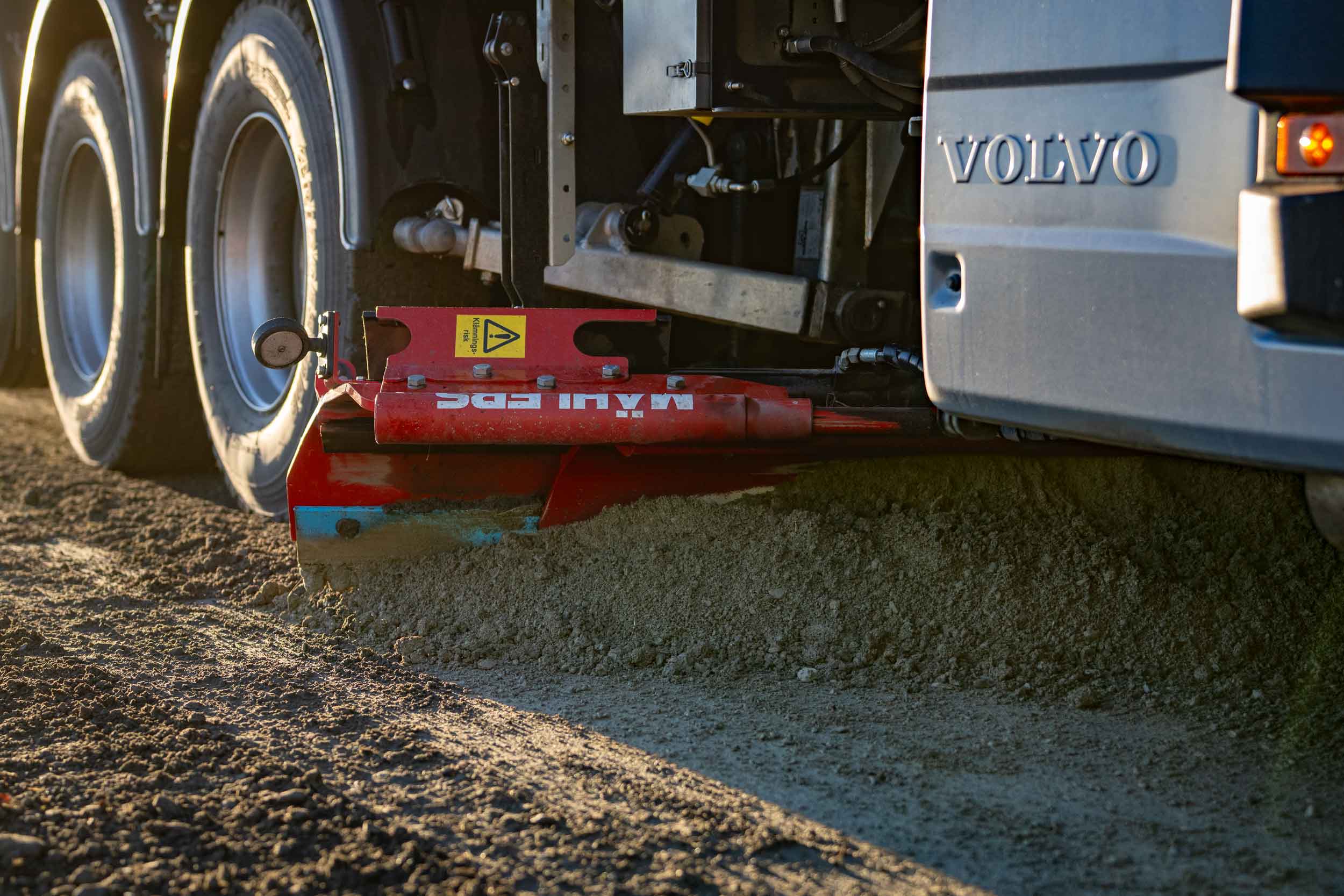 – Det har snurrat på bra, säger Tommy, som nyligen tagit sin nya Volvo FH16, 700, 8×4 i drift. Lastbilen är utrustad med Mählers plogfästen och underbett/hyvelblad.